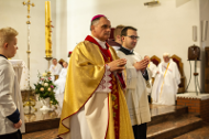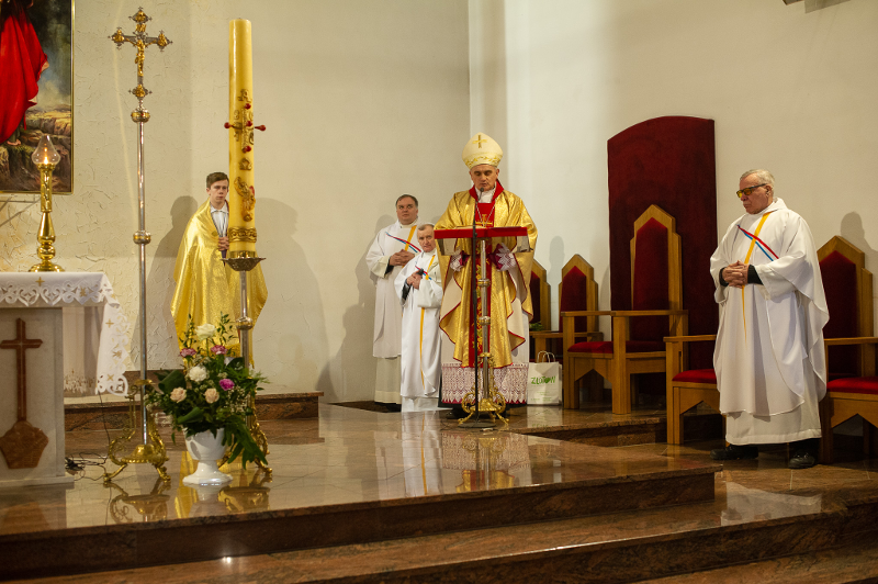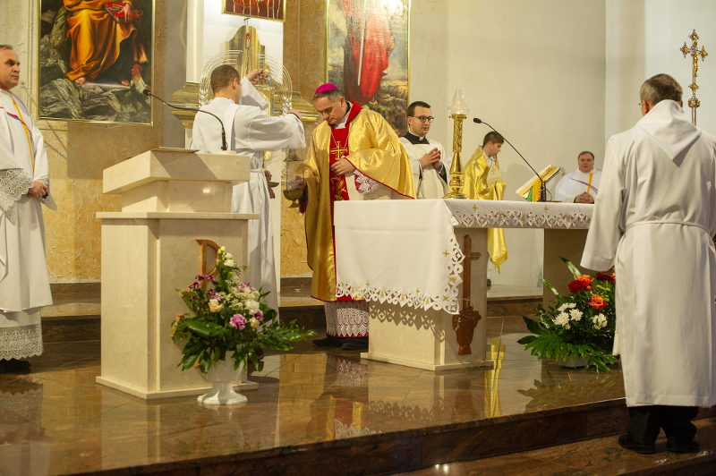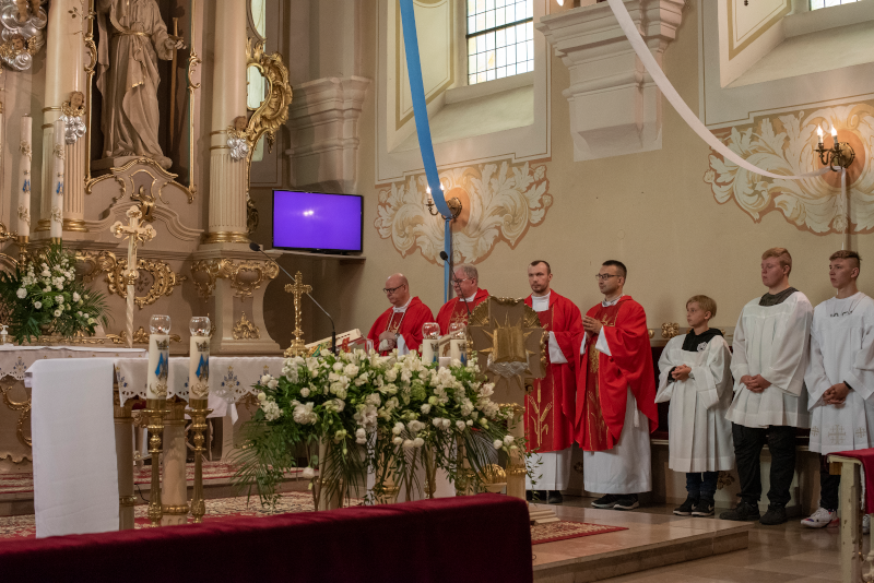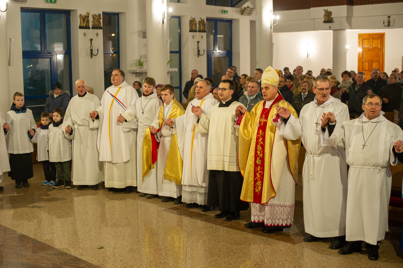 Jak wypadła czwartkowa, potrójna uroczystość? Frekwencja była zadowalająca, udało się zrealizować naszą triadę, jak to określił Ks. Biskup, czyli odpust w święto Piotra i Pawła, jubileusz 25 lat istnienia parafii oraz trzecią okoliczność – konsekrację, czyli poświęcenie kościoła i ołtarza. Szczególnie jesteśmy wdzięczni wszystkim z naszego, jak to powiedziałem, „pionu inżynierskiego”, bo udało nam się sfinalizować wszystko co związane z budową kościoła i mamy ostateczny odbiór na cały obiekt. Do tej pory było tak, że od 2010 roku mieliśmy całkowicie oddaną nawę główną i kaplicę, ale zależało nam na odbiorze pozostałych części: tylnej (m.in. zakrystii) i wieży, bo te części wciąż czekały na odbiór.