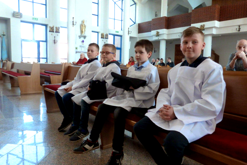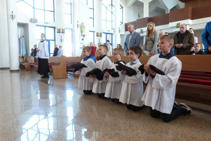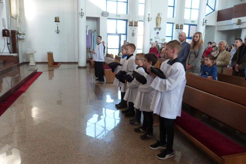 W Piątą Niedzielę Wielkiego Postu - 7 kwietnia - do grona ministrantów naszej parafii dołączyłi: Bartłomiej Dudek, Sebastian Kielich, Mikołaj Kamiński, Stanisław Lenartowicz, Paweł Remer. Naszym nowym ministrantom gratulujemy i życzymy gorliwości w służbie Panu Bogu przy ołtarzu!
