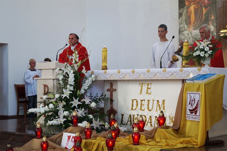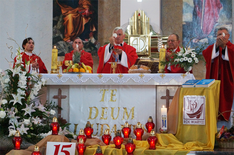 Spotkaniem na uroczystej Eucharystii, 29 sierpnia 2013 roku obchodziliśmy 15-tą rocznicę powstania naszej parafii, którą do istnienia powołał w dniu 27 sierpnia 1998 roku ówczesny ordynariusz Diecezji Koszalińsko-Kołobrzeskiej - Biskup Marian Gołębiewski. Oto kilka zdjęć z przeżywanej we wspólnocie parafialnej radości.