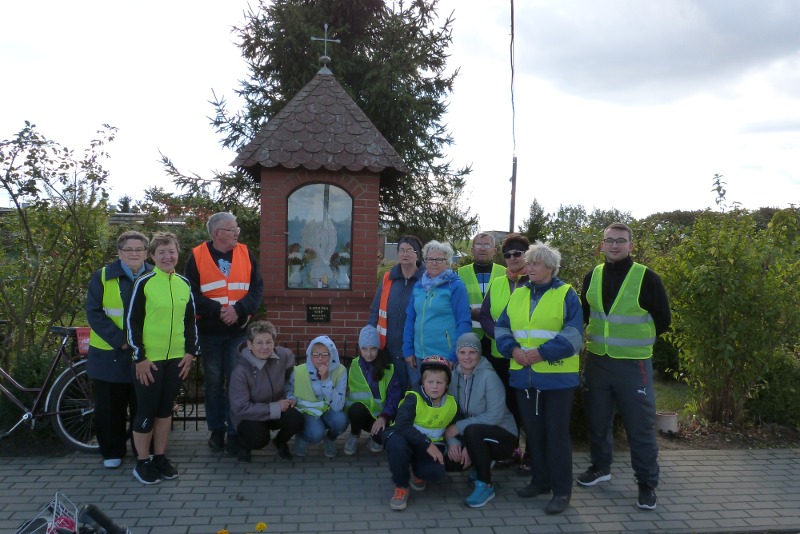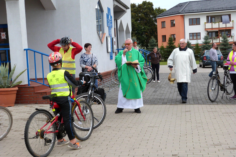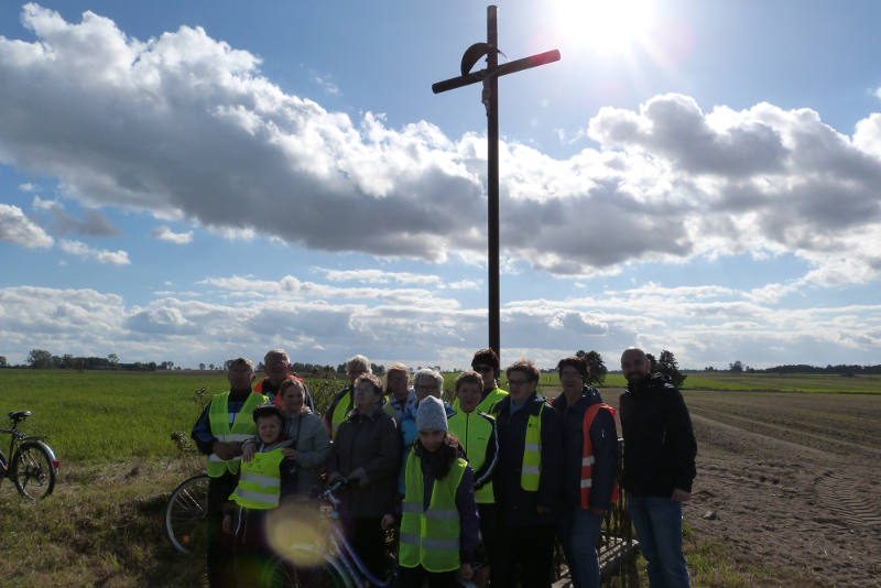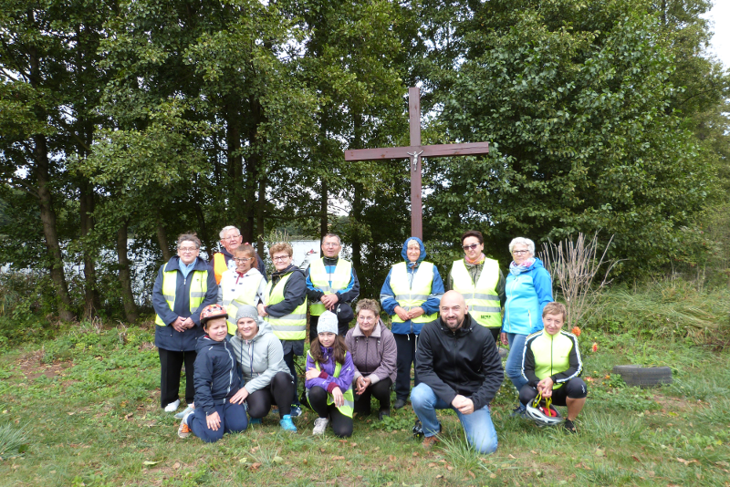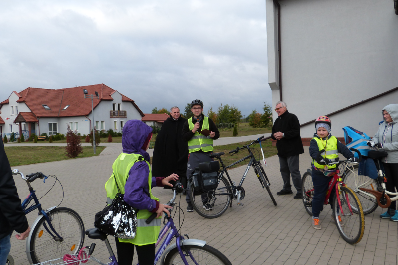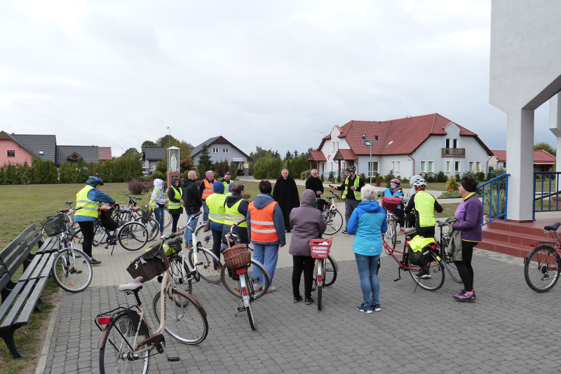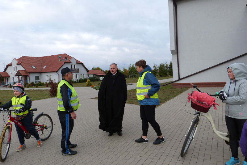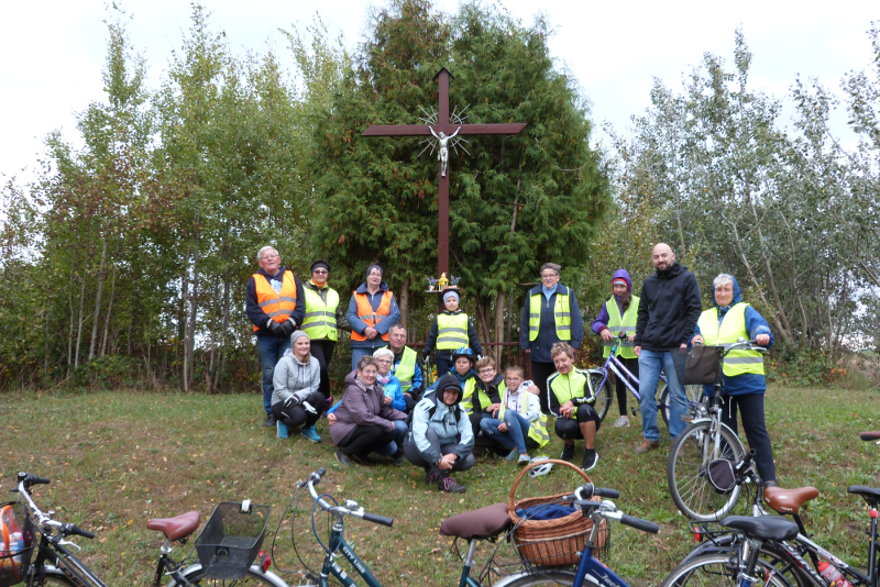 W sobotę 22 października wyruszyła kolejna pielgrzymka rowerowa z naszej parafii. Tym razem parafianie pod przewodnictwem ks. wikariusza Bartłomieja Brzezińskiego przejechali szlakiem przydrożnych krzyży i kaplic naszej parafii. Droga wiodła kolejno przez Dzierżążenko, Stare Dzierżążno, Nowy Dwór, Nowiny, Zalesie i Pieczynek. Razem z księdzem pielgrzymowało 18 osób modląc się w drodze w intencji mieszkańców parafii oraz polecając Panu Bogu swoje osobiste krzyże. Na trasie zostaliśmy bardzo mile przyjęci i ugoszczeni przez mieszkańców Nowego Dworu, Nowin i Zalesia, którym bardzo dziękujemy!