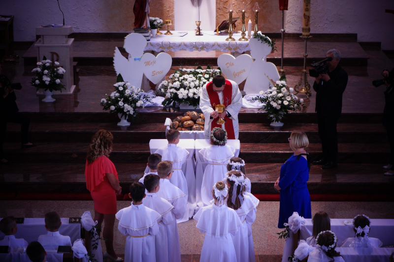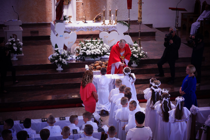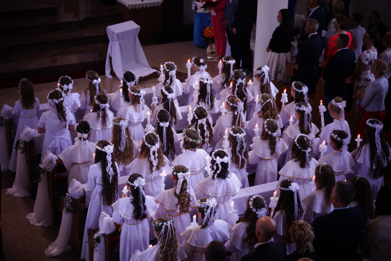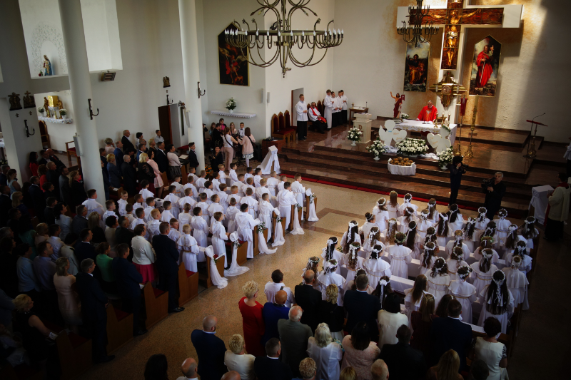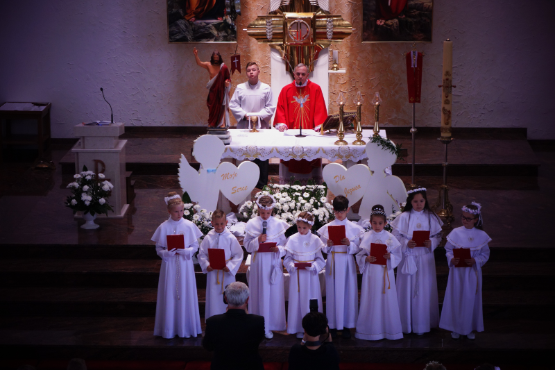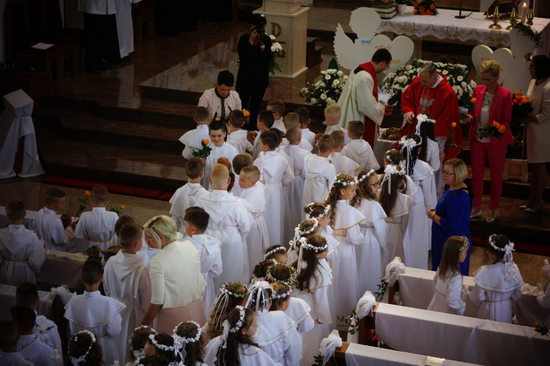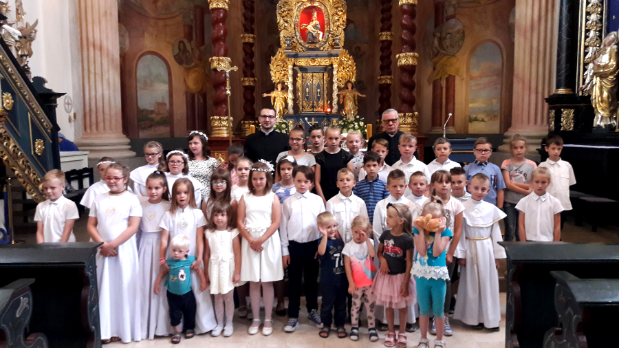 Dnia 20 maja 2018 roku, w Uroczystość Zesłania Ducha Świętego, 82-woje dzieci naszej parafii po raz pierwszy przyjęło Chrystusa w Komunii Świętej. Poniżej kilka zdjęć z tej Uroczystości, a na samym dole pamiątkowe zdjęcia z autokarowej pielgrzymki do Skrzatusza, gdzie podziękowaliśmy Matce Najświętszej za dar przyjęcia Jezusa Eucharystycznego w I Komunii Świętej przez dzieci naszej parafii.